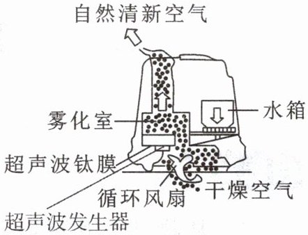 12. 冬季气候干燥,小林家添置了超声波空气加湿器。其工作原理如图所示,它内部有一个超声波发生器,发生器会通过高频的
