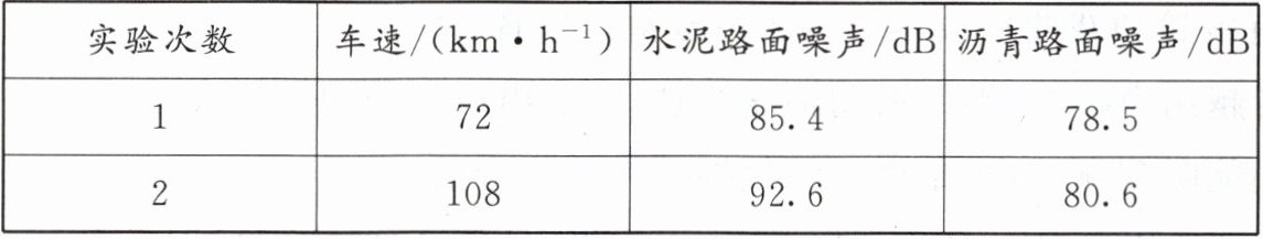 |实验次数|车速$/(km·h⁻^1)$|水泥路面噪声/dB|沥青路面噪声/dB|