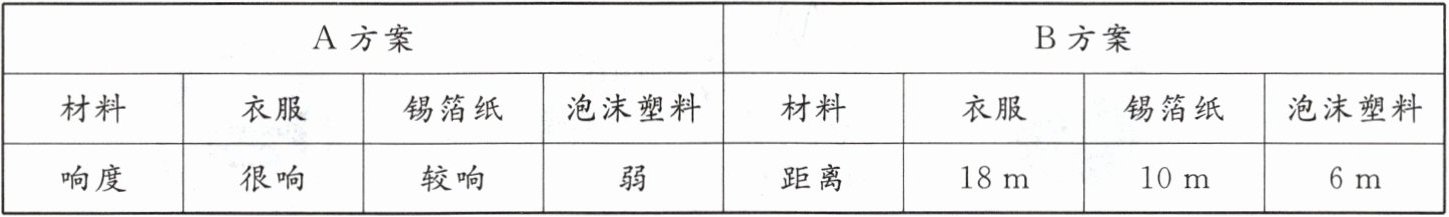 。(2)小杰将声源放入鞋盒内,在其四周塞满待测材料。他设想了以下 A、B 两种实验方案,你认为最佳的是