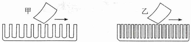 8. 如图所示,用薄塑料片在甲、乙两把塑料梳子的齿上用同样的速度分别划一次,则(