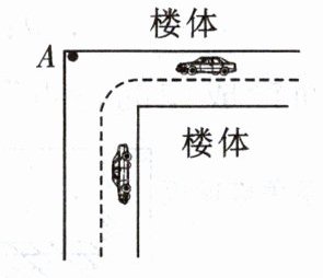 18. 小明发现地下车库中的道路有个急转弯,容易发生交通事故,在没有凸面镜的情况下,小明临时用一块大平面镜替代放置在如图所示的A处,使拐弯处的两辆车可以从镜子里互相看见对方,消除安全隐患。请你利用所学知识帮助小明在图中的A处画出平面镜放置的合适位置。