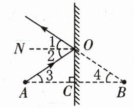 19. 物理规律可以通过数学知识来论证,如图所示是发光点A在平面镜里成像的光路图,B是A点所成的像,可以利用我们学过的数学知识论证:像和物到镜面的距离是相等的,即:AC= CB.证明过程如下,请在空格处填上合理的答案。