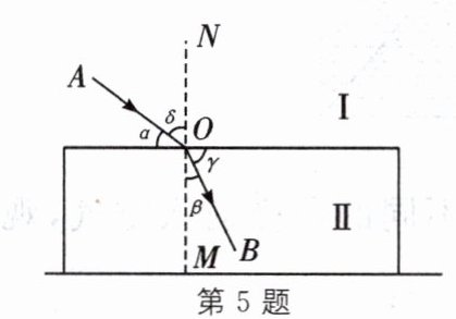 5. 如图所示,一束光线由介质Ⅰ射入介质Ⅱ,下列说法中正确的是(