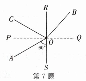 7. 如图所示是光在空气和水的界面发生反射和折射的光路图,∠AOS = 60°。图中的入射光线是