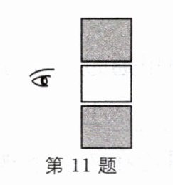 11. 如图所示的军事观察孔,人可以通过孔观察外面,现在在孔中嵌入玻璃砖后观察的范围将(