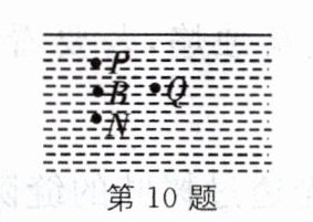 10. 如图所示,人眼在A点看见河里B点有一条小鱼,则水中的小鱼实际位置大致在(