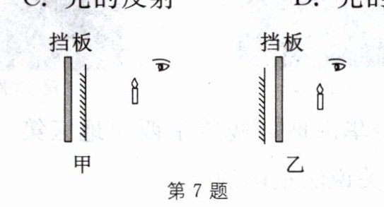 7. 小明在“探究平面镜成像”实验中,分别把一个不透明且不光滑的挡板放置在如图甲、乙所示的位置,则小明在右侧观察时(