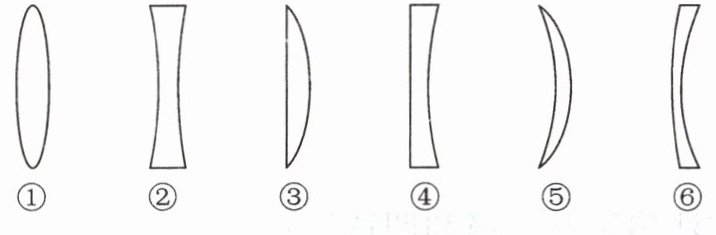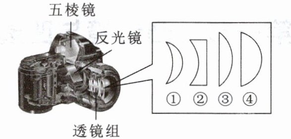1. 单反相机镜头由多种光学器件组成,其中较为重要的是透镜组,如图所示透镜组中属于凹透镜的是(