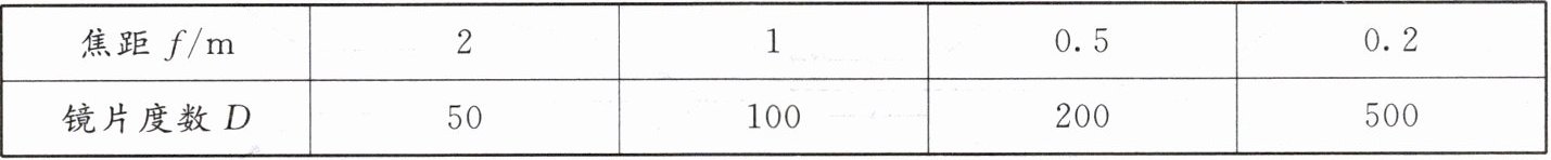 (1) 分析表格数据中近视眼镜的镜片度数与其焦距的数量关系,可得结论:D= ____