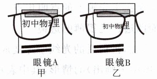 (选填“增大”或“减小”)。(3) 小明分别将A、B两副不同度数的近视眼镜,放置在书籍前相同位置,通过镜片观察到不同的像,如图甲、乙所示,请判断哪副眼镜的镜片度数较高,并说明理由:____