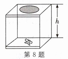 8. 小明用透明塑料盒设计了一个昆虫标本观察器,如图所示。盒底上放标本,盒盖上嵌入一凸透镜。有焦距为$5$cm和$10$cm的两种凸透镜,为了在盒盖上方附近方便通过凸透镜观察到标本正立、放大的像,凸透镜焦距$f与盒高h$选择合理的是(