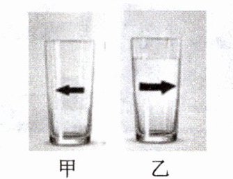 9. 将一张画有箭头的纸条放在圆柱形空杯后方一定距离处,透过空杯观察到如图甲所示的情景。向杯中倒入适量水后,透过水杯观察到的箭头如图乙所示。关于此现象下列说法正确的是(