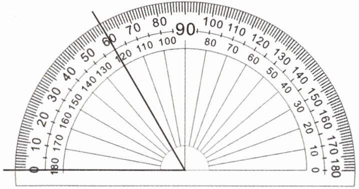 (3)量角时,角的顶点要与量角器的( )对齐,角的一边要与量角器的( )重合,角的另一边所对的量角器度数就是这个角的大小。