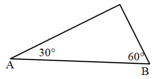 7. 以A为顶点画一个$30^\circ$的角,以B为顶点画一个$60^\circ$的角,组成一个三角形。你能量出这个三角形第3个角的度数吗?