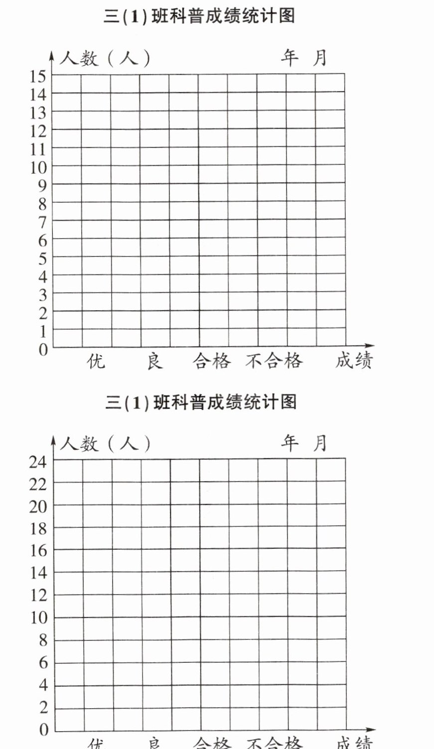 (2)上面的统计图1格表示( )人,下面的统计图1格表示( )人。