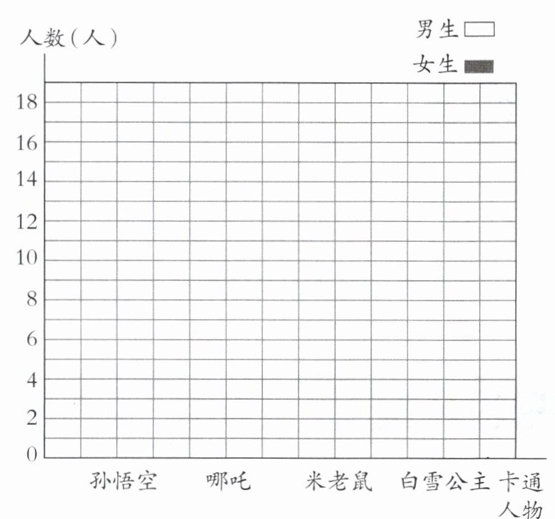 (3)喜欢哪吒的男生比女生多( )人,喜欢白雪公主的女生比男生多( )人。