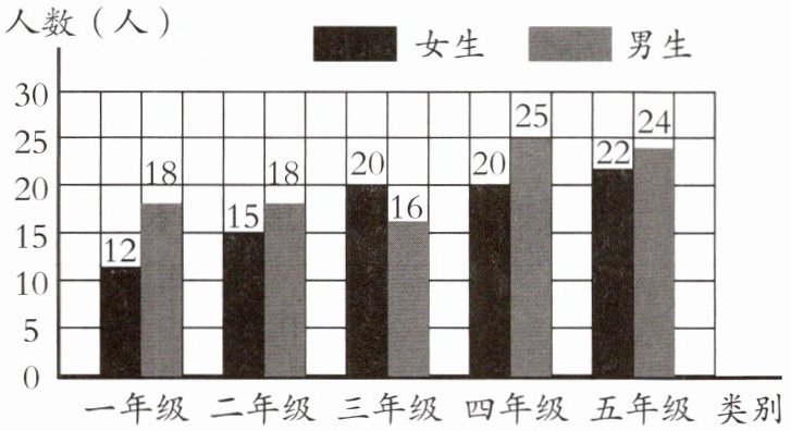)年级女生同样多。(4)二年级男生比女生多多少人?
