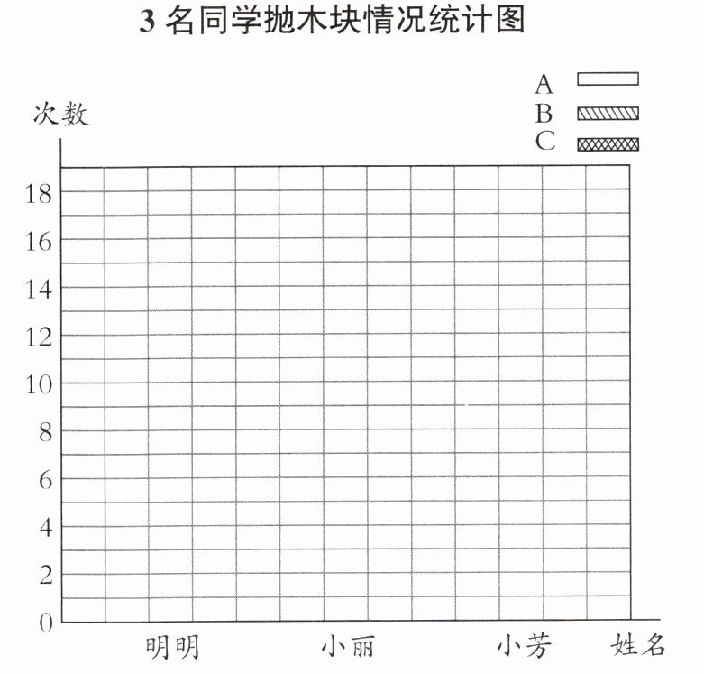 (1)请你根据统计表中每人抛得的A、B、C朝上的次数,完成下面的统计图。