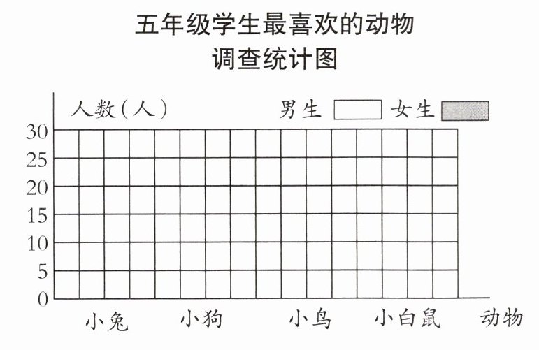 5. 下表是五年级学生最喜欢的动物调查统计表。