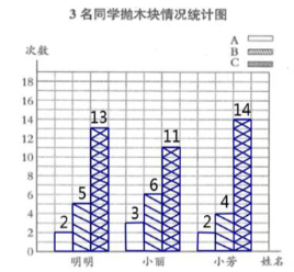 3名同学抛木块情况统计表