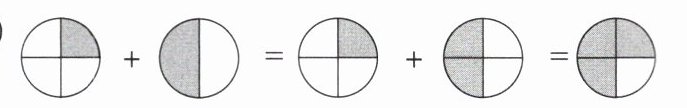 $\frac{1}{3}+\frac{1}{2}$ $1-\frac{3}{5}$ $\frac{1}{2}+\frac{1}{4}$ $\frac{5}{8}-\frac{1}{4}$