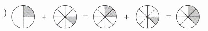 (1)$\frac{1}{4}$+$\frac{1}{8}$=$\frac{2}{8}$+$\frac{1}{8}$=$\frac{3}{8}$