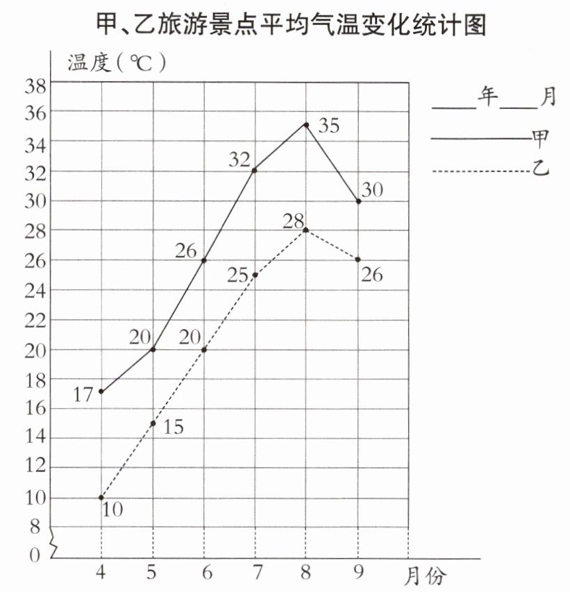 9. 下面是甲、乙旅游景点平均气温变化统计图。