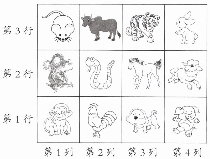 (3)用数对把鼠、牛、虎、兔的位置表示出来。