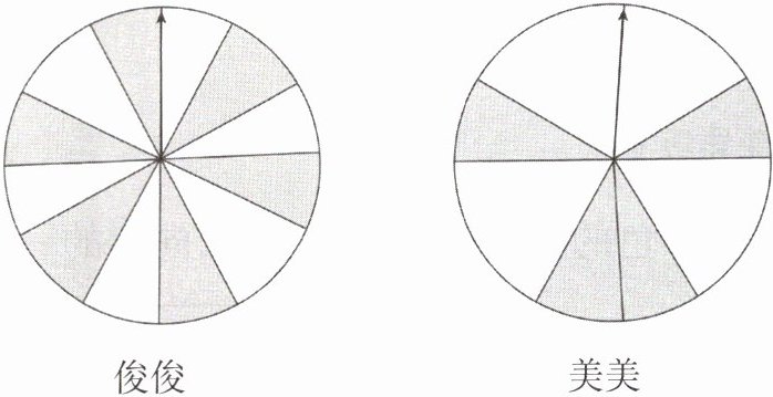 (2)俊俊和美美一起玩转盘游戏,两人约定好,指针停在灰色区域俊俊加1分,指针停在白色区域美美加1分。两人各设计了一个转盘,你认为使用哪个转盘更合理?为什么?