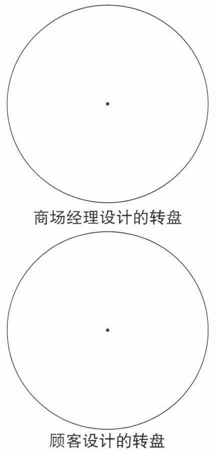 7. 现在商家利用游戏活动来进行促销。请你为幸运大转盘设计一等奖、二等奖、三等奖。如果你是商场经理,那么你会怎样设计?如果你是顾客,那么你会怎样设计?把你的想法画出来。