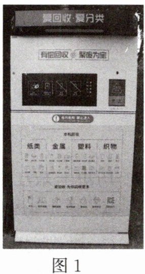 图 1 为近年来大城市出现的智能垃圾回收箱,它运用互联网、大数据和人工智能等技术,以有偿回收方式接收市民投放的旧衣物、塑料、金属、废纸等垃圾,提高资源利用率。据此,完成 1~2 题。
