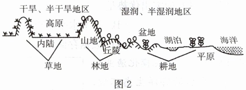 图 2 是我国部分地区土地资源分布简图。读图,完成 5~6 题。