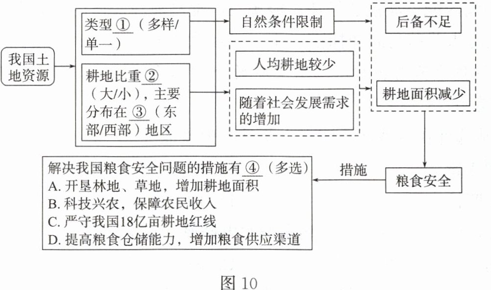 和林地为主。(2)结合所学知识,完成关联图(图 10)。