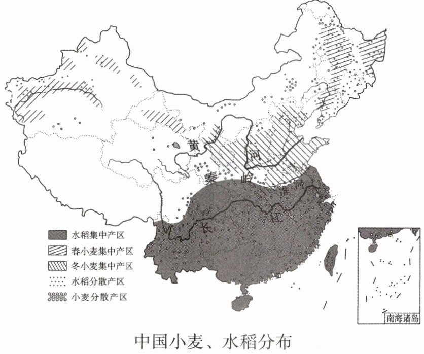 粮食作物;经济作物;谷类;豆类;薯类;水稻;小麦;玉米;东北;华北;水稻;长江中下游;四川;经济价值高;技术要求高;商品性强;工业原料;东北平原;甘蔗;华南地区;花生;华北平原;长江流域;棉花;黄河流域;长江流域;新疆;华南