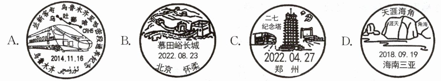 7. 下列最可能在②地邮局加盖的邮戳是( )