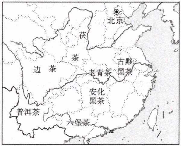 中国是茶的故乡和茶文化发源地。右图示意我国黑茶主要分布区域。据此,完成 4~5 题。
