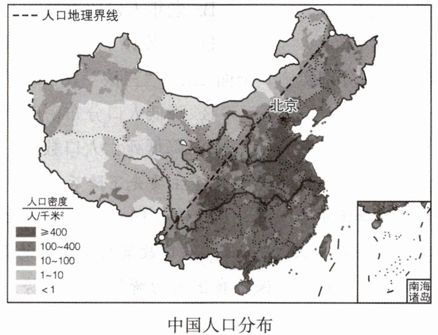 探究小组的同学在搜集资料时,获得了中国人口分布图等。在阅读资料后,提出了以下问题。