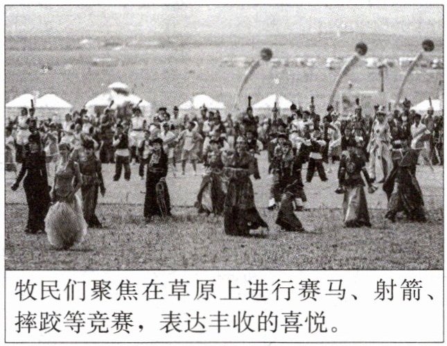 (填路线名称)中,游客赶上了一个重要的节日。广阔的牧场上,分布着洁白的蒙古包,蓝天白云下,人们欢聚一堂(见下图)。这个节日的名称是那达慕(大会)