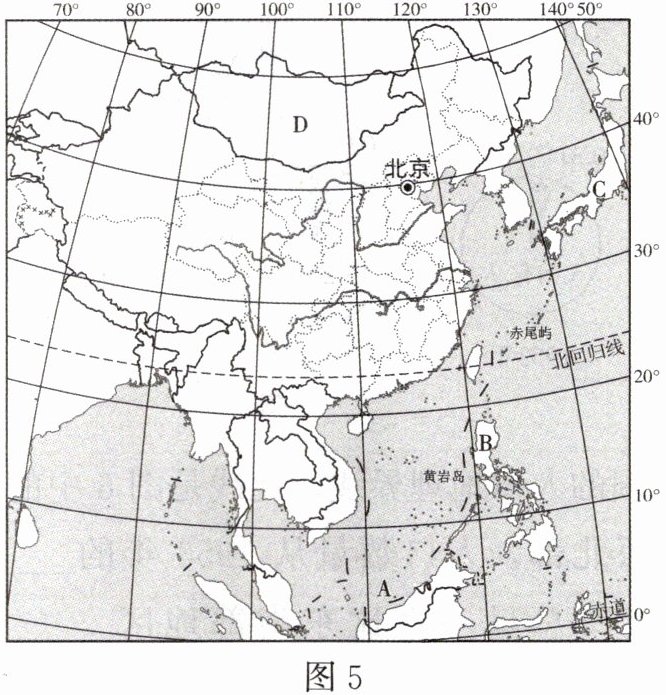 材料三 黄岩岛是中国固有领土。黄岩岛海域拥有丰富的造礁生物、鱼类等海洋生物资源,是我国重要的传统渔场。图5示意中国疆域及中国黄岩岛位置。