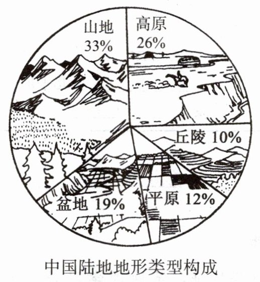 。由中国陆地地形类型构成图可知,我国地形类型具有复杂多样