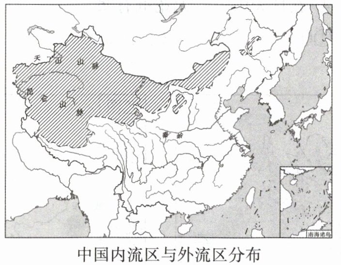 的河流称为内流河,内流河所在的集水区域为内流区。我国绝大多数河流分布在外流