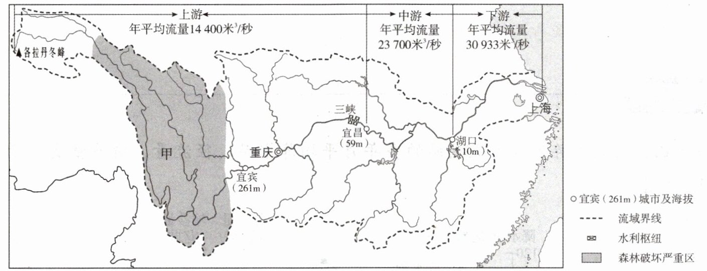 我国河流众多,在开发利用河流的同时,要注重生态环境和经济和谐发展。读长江流域示意图,完成4~6题。