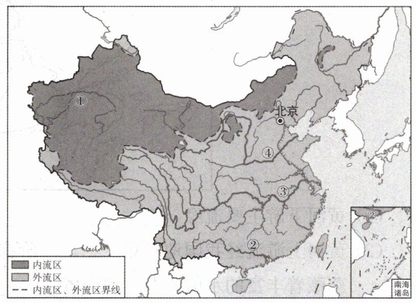1. 右图①②③④四条河流中,流量最大的河流是(