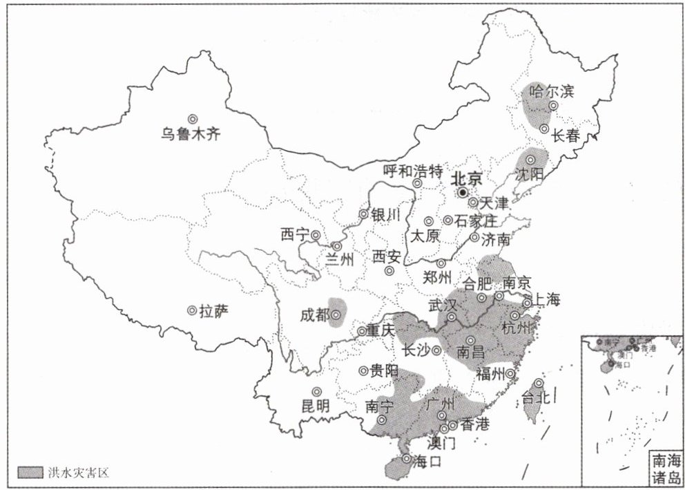 (1) 长江中下游平原地区夏、秋季节洪涝灾害频发,其原因有(