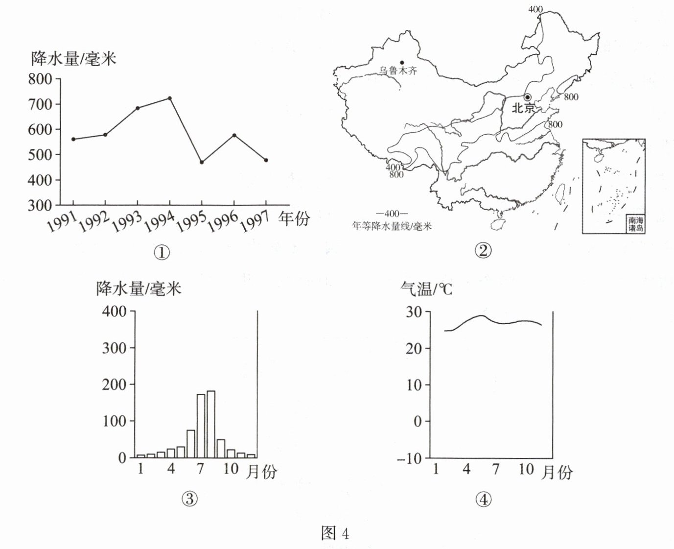 图4为我国各种形式的气候资料图。读图,完成10~12题。