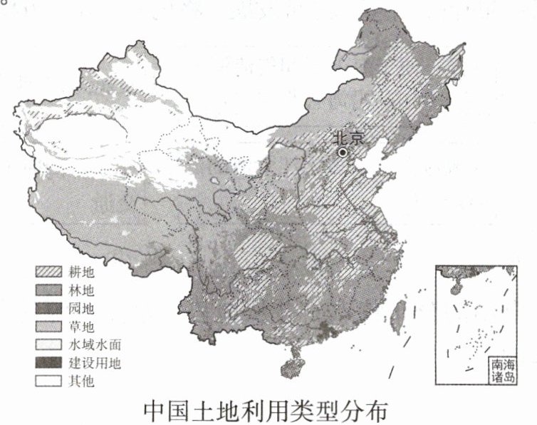(明显/不明显)。读中国土地利用类型分布图,完成表格。