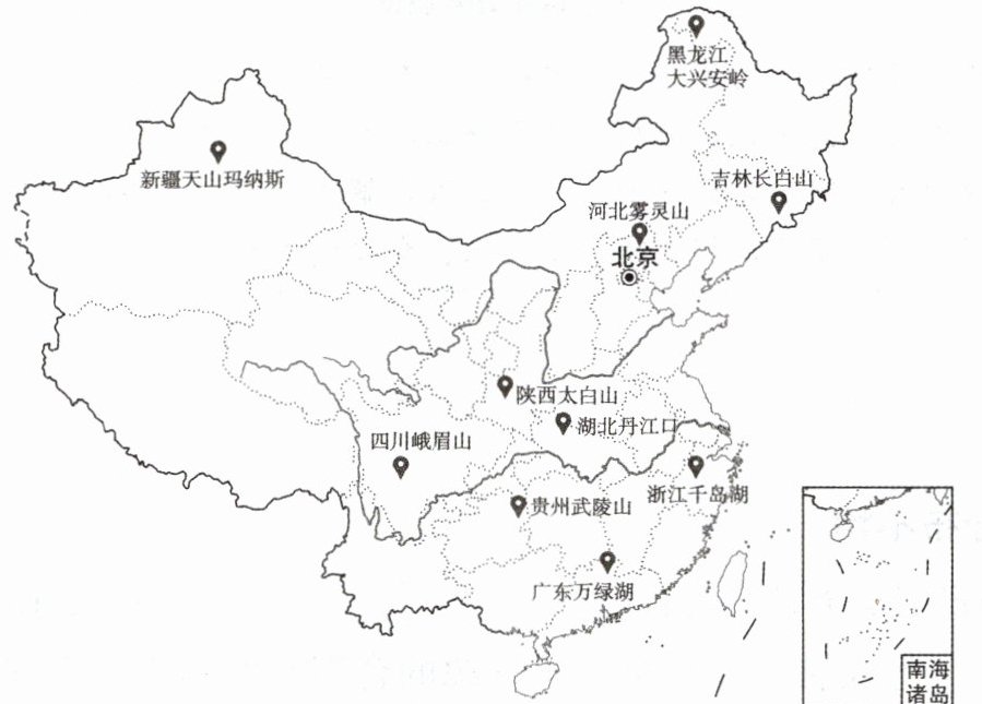 下图示意该饮用水品牌十大水源地。