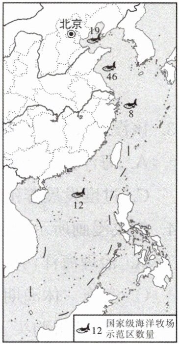 2. 目前,我国已建成多个国家级海洋牧场示范区。我国发展海洋牧场的主要优势是海域辽阔,适宜多种海洋生物生长。草原面积广,畜牧业发展基础好与海洋渔业无关;我国陆地面积辽阔,东西跨度大与发展海洋牧场无关;地形复杂多样与发展海洋渔业无关。