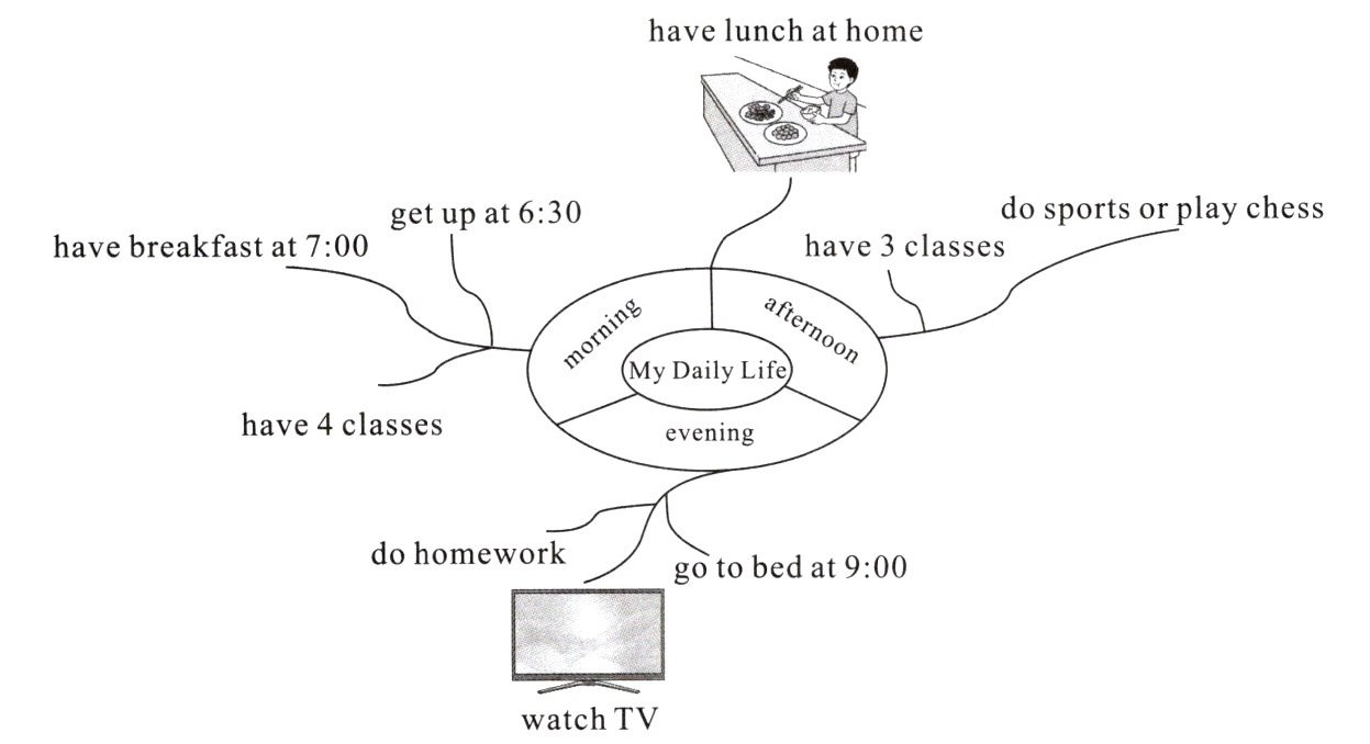 假如你是中学生林涛。英语老师布置了一项课前作业:向同学们介绍自己的日常生活。请你根据以下提示,完成此项作业。