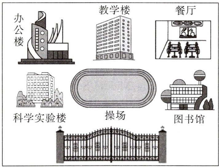 本周,格林中学七年级一班转入一名叫刘忻的新同学,他对自己的新学校还不了解。请根据下图提示,写一篇短文,向刘忻介绍一下格林中学的布局。